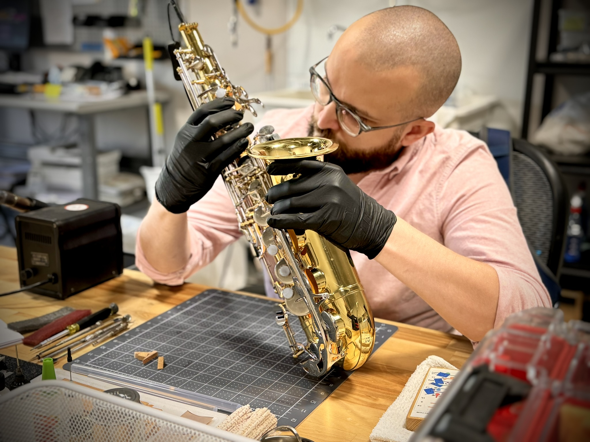 The Gift of Music Foundation has a full-service instrument repair shop in our new HQ facilities in northwest Atlanta, GA. Our shop can handle any repair on most band and orchestra instruments.
